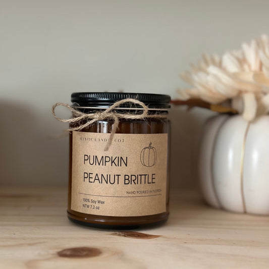 Amber glass container (9oz) candle, Pumpkin Peanut Brittle, Aromatherapy candle, Handmade Gift, Birthday Gift, Relaxation candle, Halloween