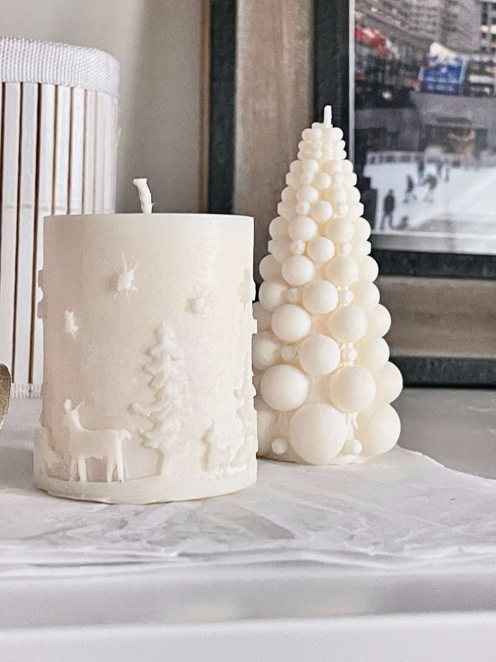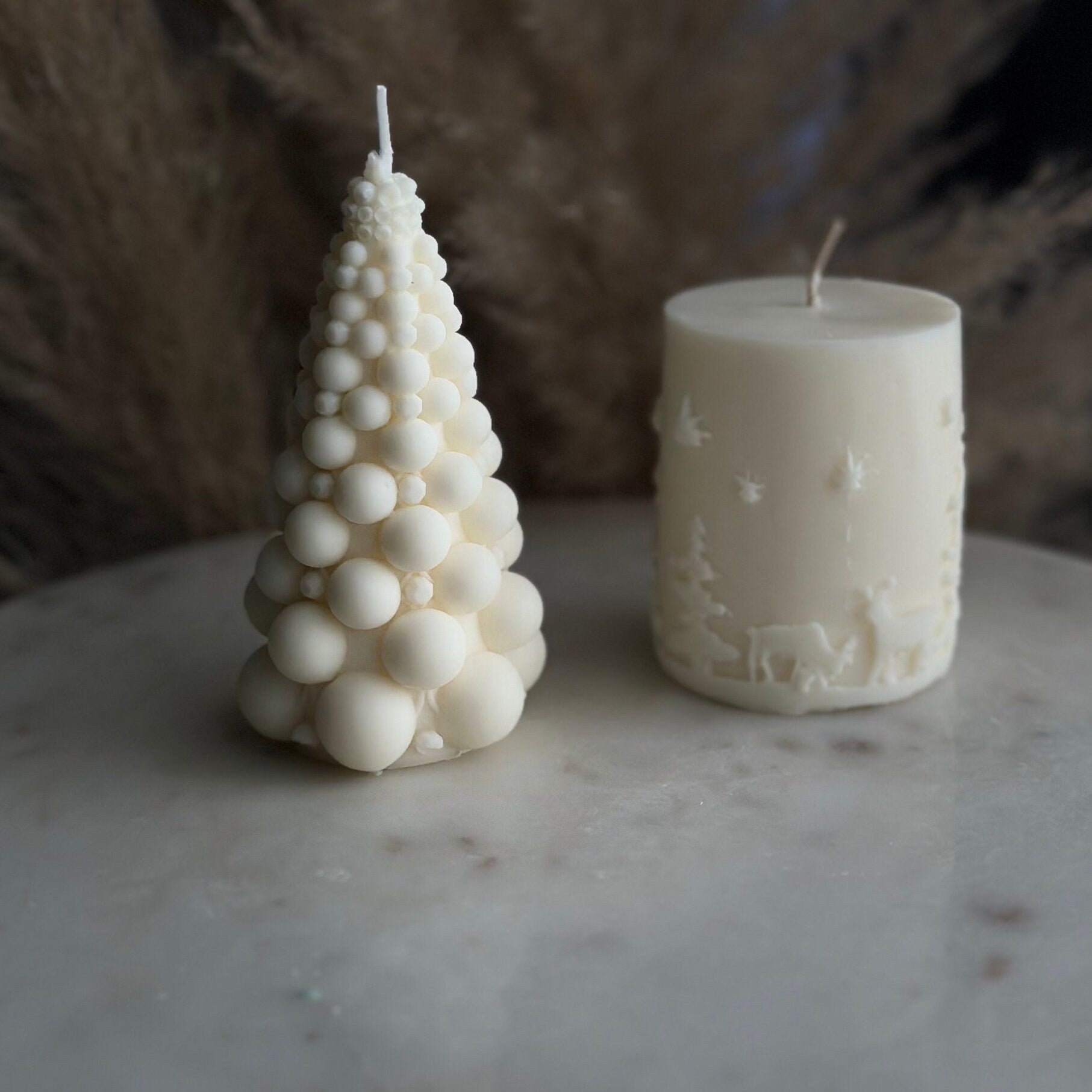 Christmas tree candle, Bubble Christmas tree candle, soy wax candle, Set of 2, cylinder candle, white, Christmas gift, Christmas gift