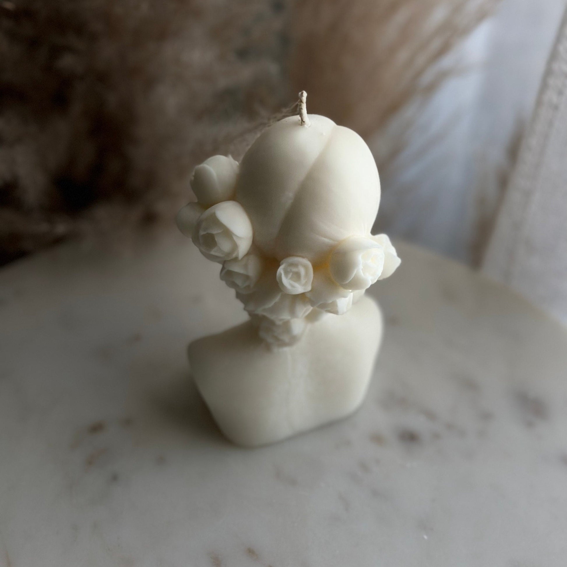 Girl with flowers candle, Soy wax candle, Birthday Gift, Women bust candle, Sculpture candle, Unique candle, Hand-poured, Anniversary gift