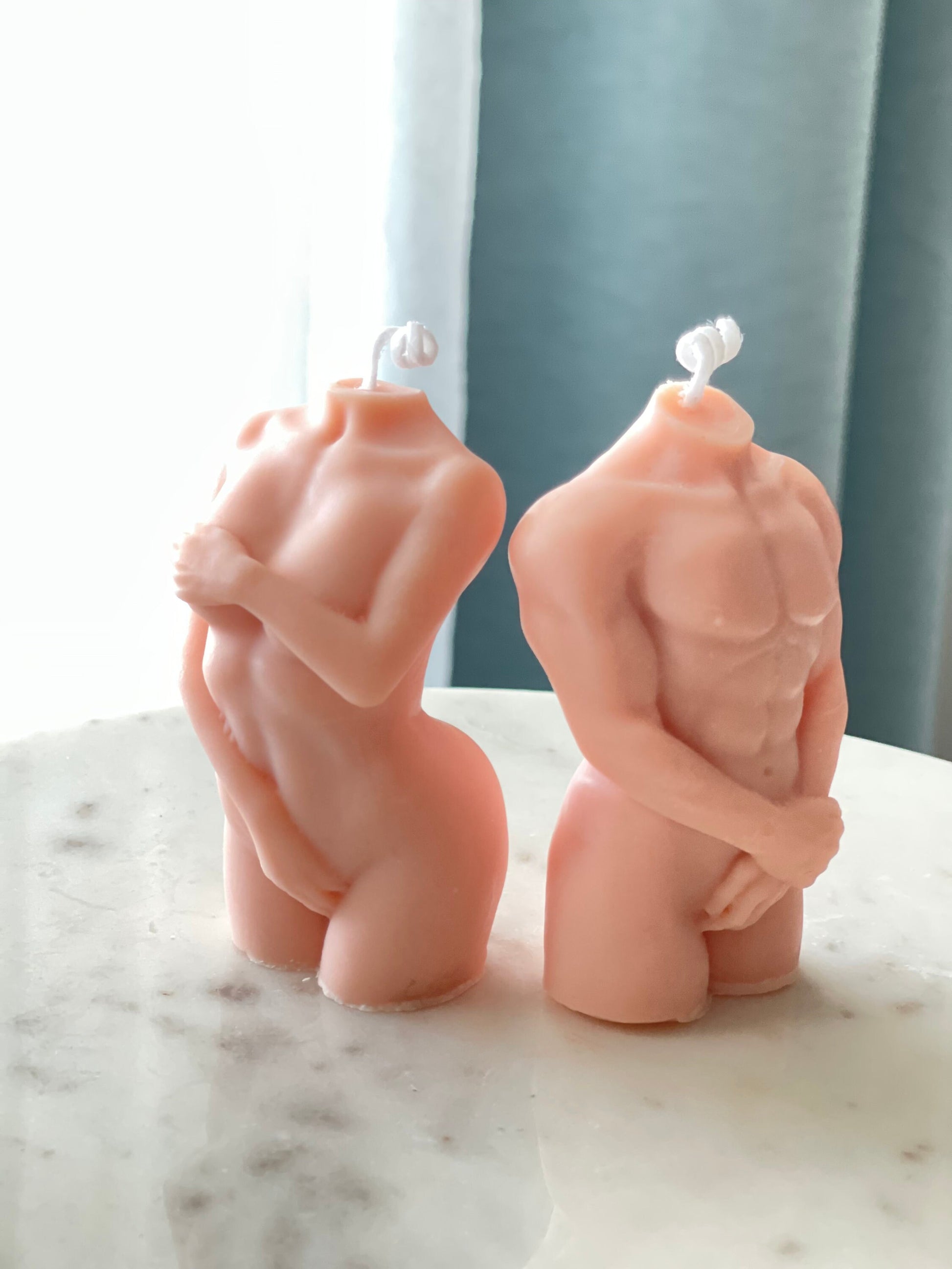 Hand-poured soy wax candles. Women and man torso candles, set of 2.